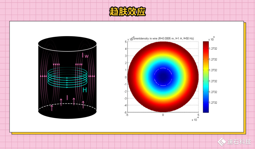 這是因為高頻電流通過的時候,在導線內部會產生一個軸向的交變磁場,該交變磁場會再度產生一個環形的徑向交變電場,該電場對導線外層電流進行加強,與內層電流相抵消,從而導致導線傳輸電流時,電流聚集在導線外層,而內層“空心化”使得整體效率減低,耗費金屬資源。