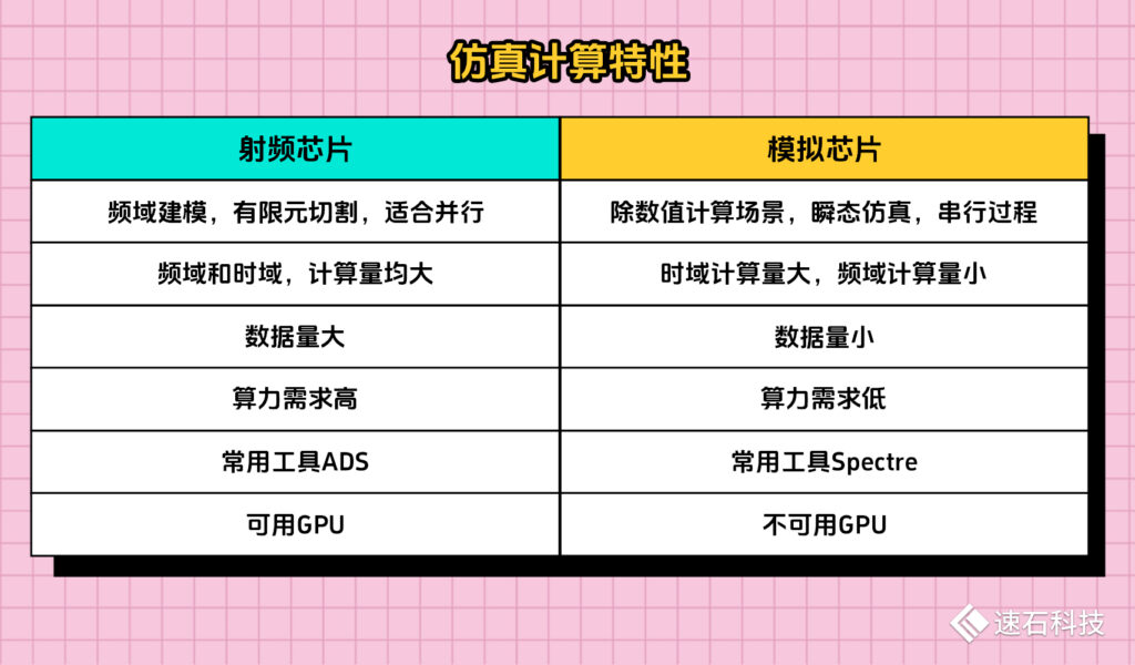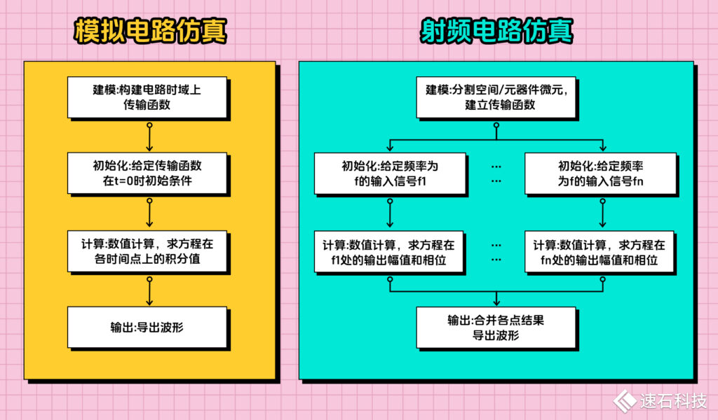 總結一下,射頻芯片與模擬芯片在仿真計算特性上的差異: