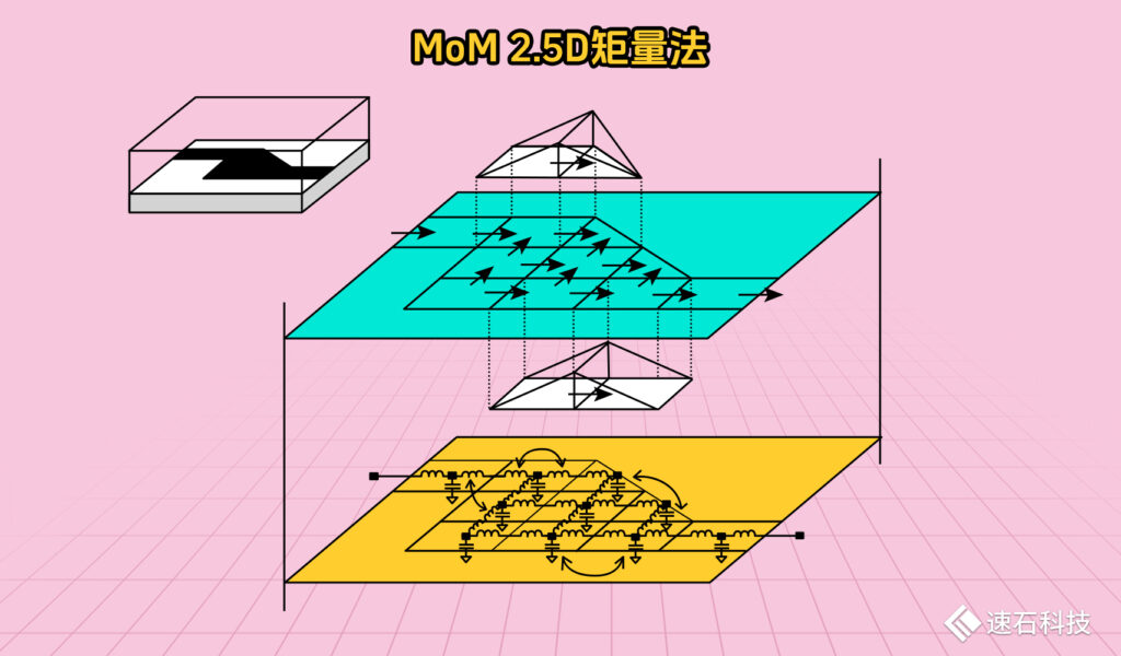而MoM(Method of Moments)2.5D矩量法,是專門針對3D層狀結構出的優化算法。它根據半導體平面工藝的結構,做了一定數學上的簡化和等價,把三個未知數簡化成兩個未知數,加快了求解速度。