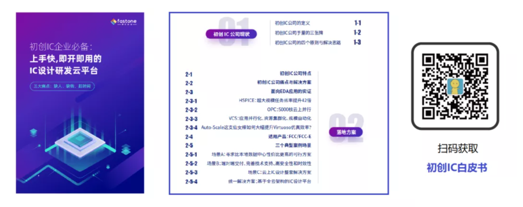 我們有一本《初創IC企業必備:上手快,即開即用的IC設計研發云平臺(三大痛點:缺人,缺錢,趕時間)》,針對初創IC公司的現狀、特點、原則與痛點,提出有效解決方案,幫助初創IC公司殺出重圍,早日實現規模量產并在市場上占據穩固地位,歡迎掃碼添加小F微信獲取。