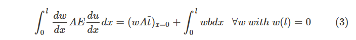 必須記住,滿足弱形式的解也是方程的強對應形式的解。另外,請記住試用解決方案( x )必須滿足位移邊界條件。這是試驗解的一個基本屬性,這就是為什么我們稱這些邊界條件為基本邊界條件。