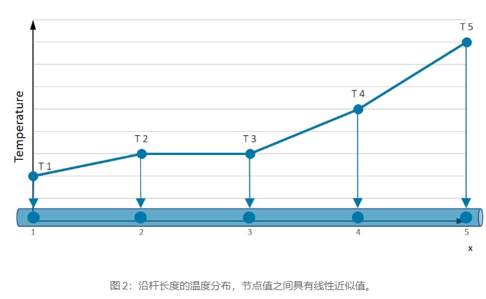 為了能夠進行模擬,需要創建一個由多達數百萬個共同構成結構形狀的小元素組成的網格。對每個元素進行計算。結合各個結果給我們結構的最終結果。我們剛才提到的近似值通常是多項式的,實際上是對元素的插值。這意味著我們知道元素內某些點的值,但不是每個點的值。這些“特定點”稱為節點,通常位于元素的邊界處。變量變化的準確性由一些近似值表示,例如。線性、二次、三次等。為了更好地理解近似技術,我們將查看一維條形。