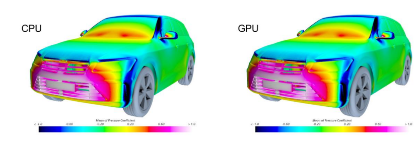 Simcenter STAR-CCM+物理領域的產品經理Stamatina Petropoulou表示,西門子相信異構架構是未來的發展方向。在尋找任何給定仿真項目的最佳成本解決方案時,CFD工程師將希望從CPU切換到GPU,從本地切換到云端,甚至在一個單一的仿真運行中利用所有的優勢。她指出,“對于多年來一直在驗證軟件結果一致性的Simcenter STAR-CCM+客戶來說,無縫切換CPU到GPU非常關鍵!”因此,他們確保客戶可以使用相同的代碼,并在CPU或GPU上獲得等效的結果(參見圖像)。